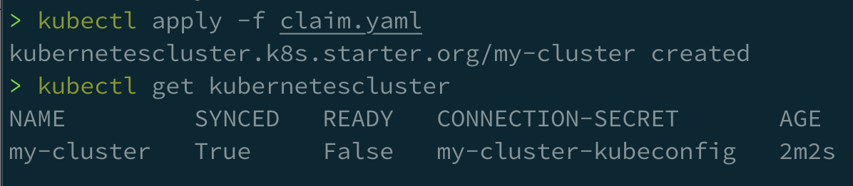 The Claim APIs from your managed control plane are now visible in the cluster. You can verify this with kubectl api-resources.